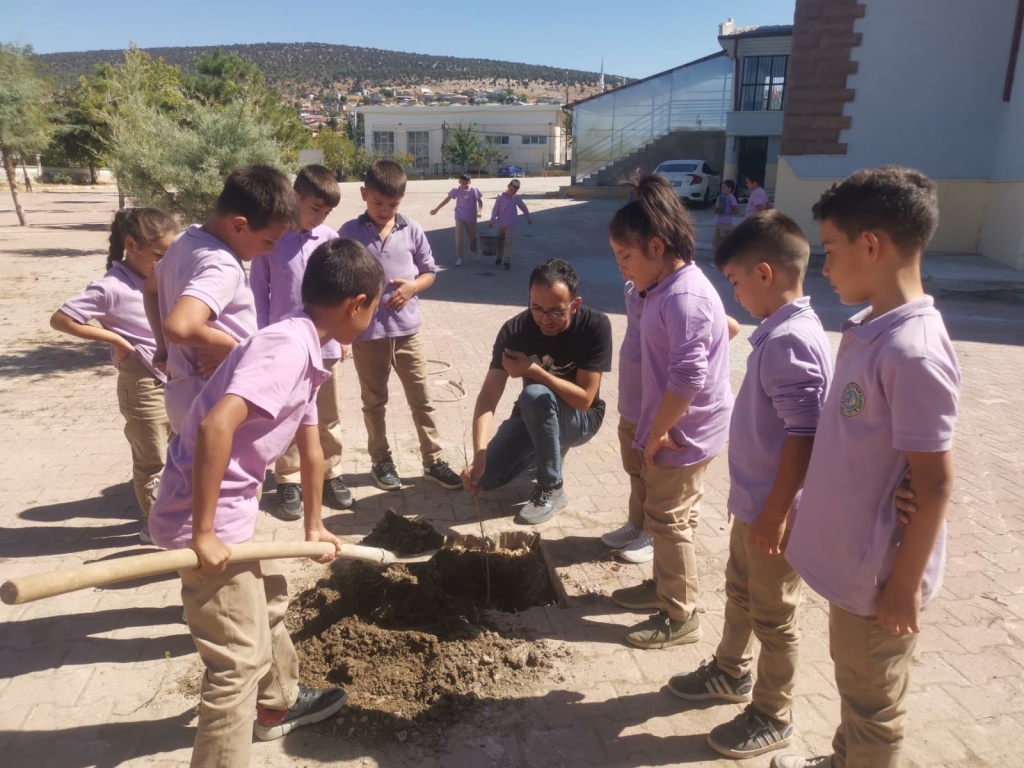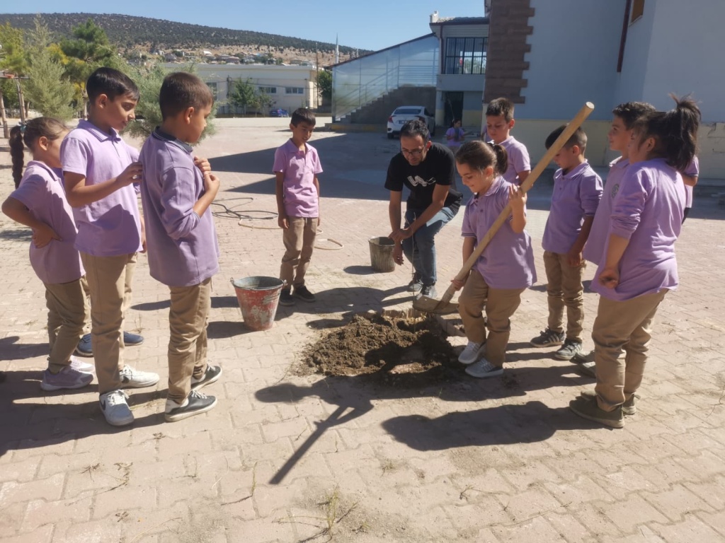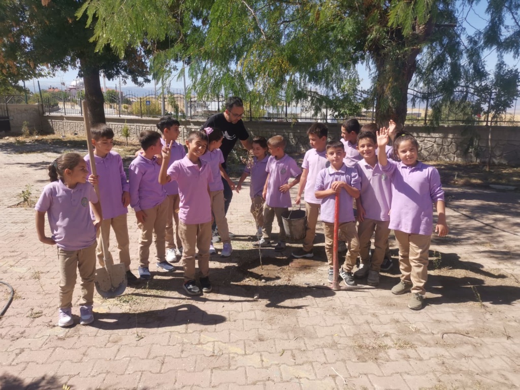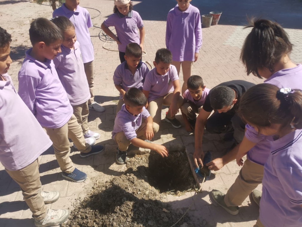 2025-2026 Eğitim Öğretimi yılına Milli Eğitim Bakanlığımızın 2025/63 sayılı genelgesi gereği Eğitim Öğretim yılının ilk ders saatinde "Çevreye ve canlılara değer vermek" eylemini yansıması olarak yeşil vatanımızın korunması, orman yangınlarına karşı farkındalık oluşturulması, fidan dikilmesi, orman temizliği gibi konulara değinilerek okul bahçemize fidan dikimi etkinliği yapılmıştır.